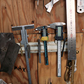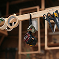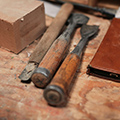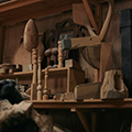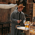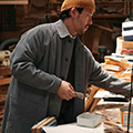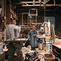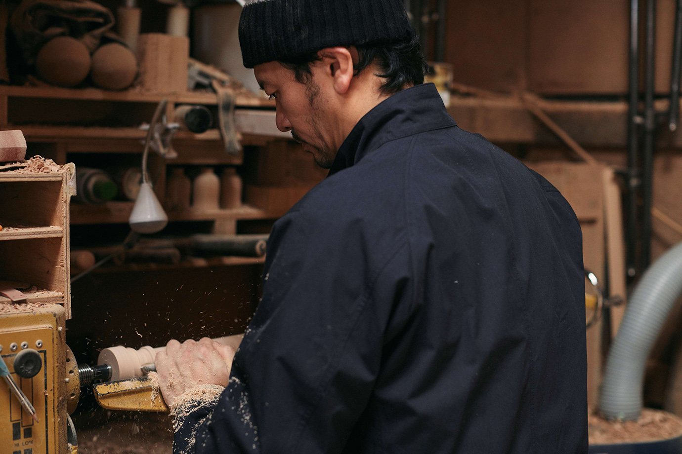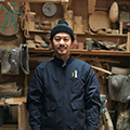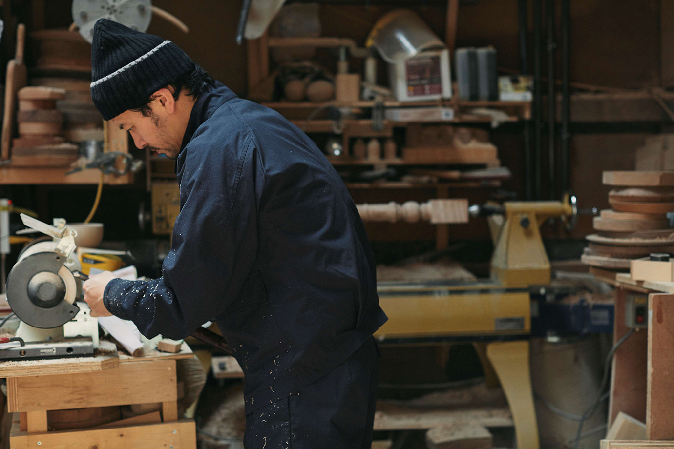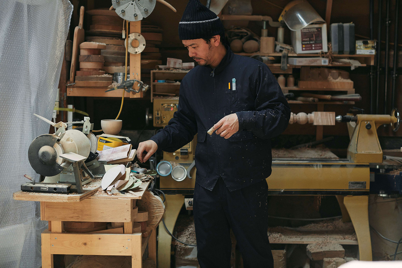 今回は吉川さんの工房を訪ねて、実際に手を動かしていただきながら、「原点」と語る幼少時代のこと、木やものづくりへの思い、ふだん着ている服などについて、お話をうかがいました。