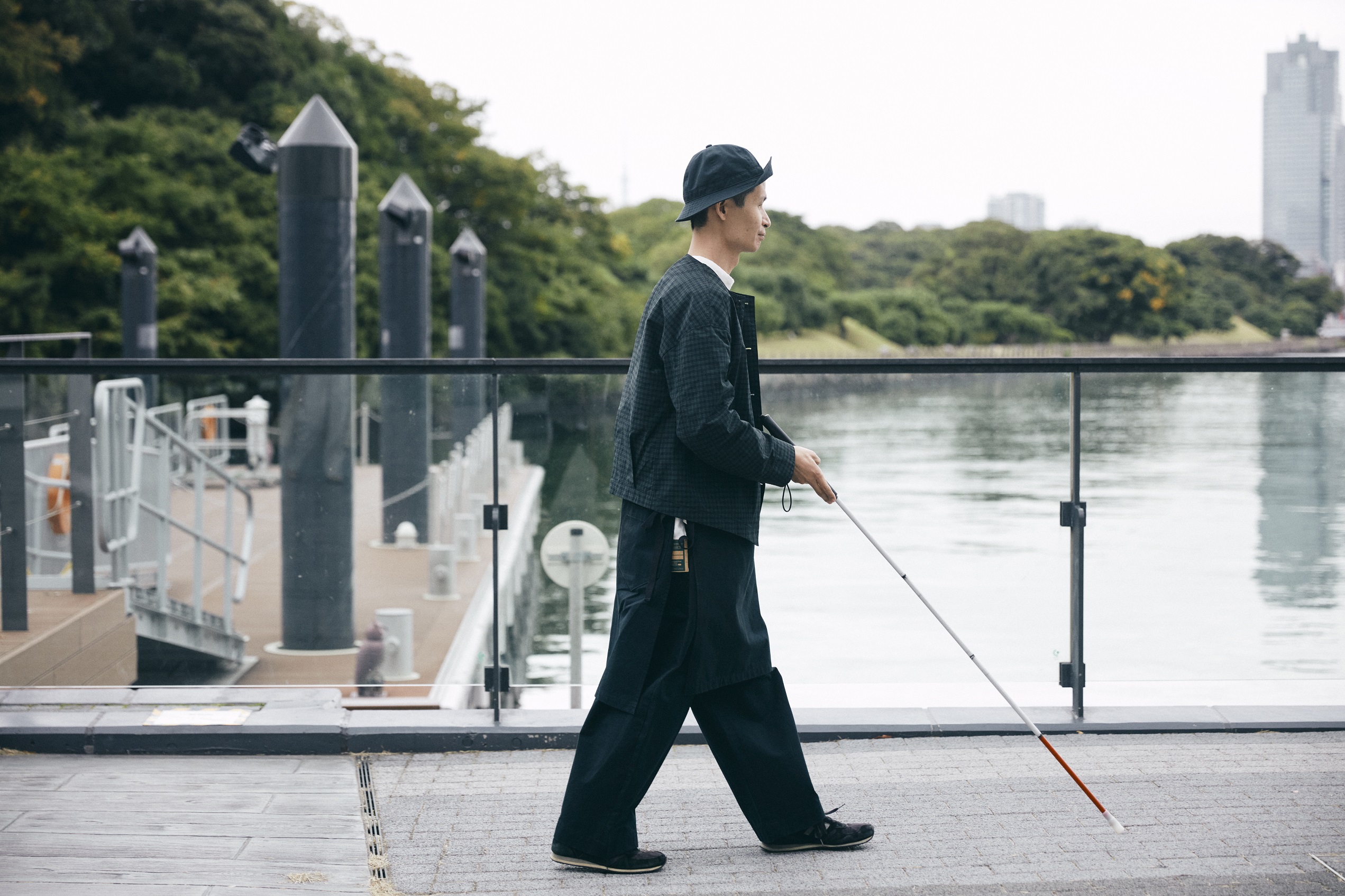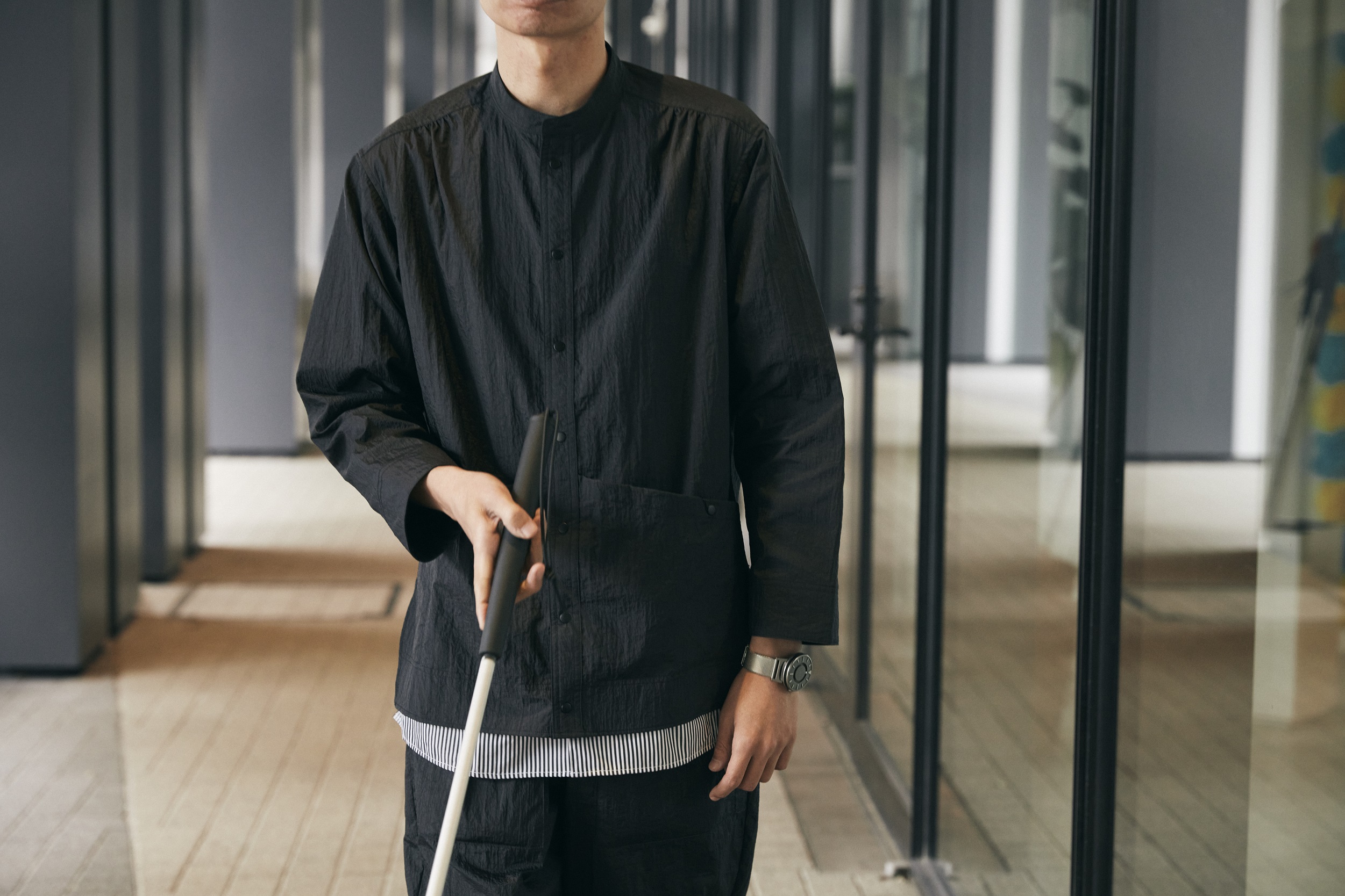 1988年にドイツの哲学博士、アンドレアス・ハイネッケによって発案され、1999年に東京で初開催されて以降、日本で23万人以上を動員してきた「ダイアログ・イン・ザ・ダーク」。「ダイアログ・イン・ザ・ダーク」とは、完全に光を閉ざした“暗闇”で、聴覚や嗅覚など、視覚以外の感覚を使って日常生活の様々な事柄を体験するエンターテイメント形式のワークショップのこと。「人が得ている情報の80%は視覚から」といわれており、ふだんから目を使わない視覚障害者によって、暗闇の中、導かれる体験は、多くの人々に新たな感覚や行動を起こすきっかけをもたらしています。 視覚障害者の檜山さんは、「ダイアログ・イン・ザ・ダーク」でアテンドを務めて今年で20年。今の仕事やふだん考えていること、着ている服のことを中心に、日頃から檜山さんがみている世界について教えていただきました。