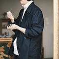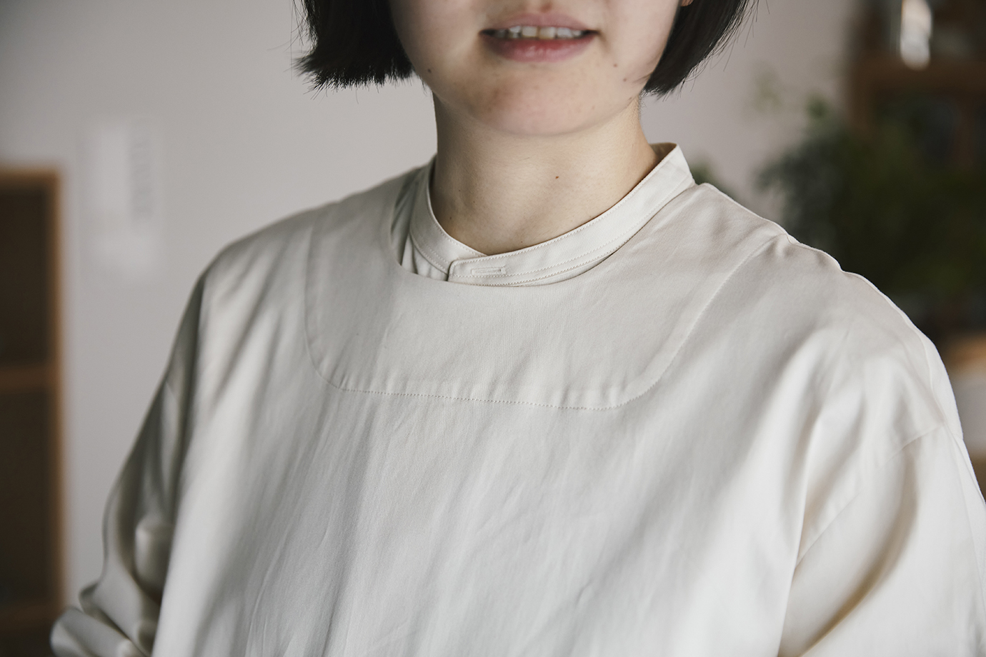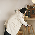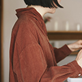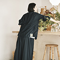 割烹着をイメージして作られているけど、前後を逆にして着られるから、羽織ることができるのもいいですね。