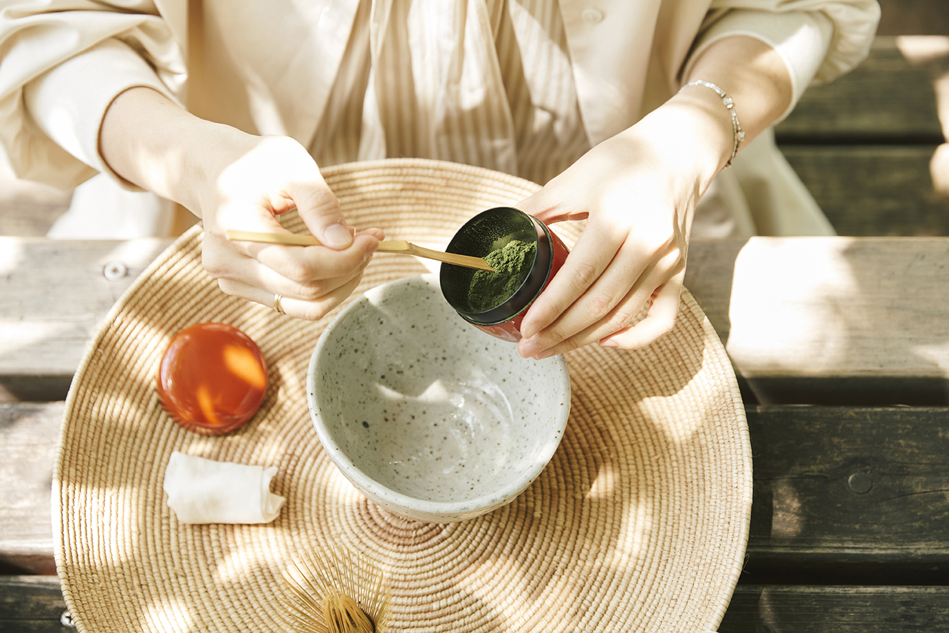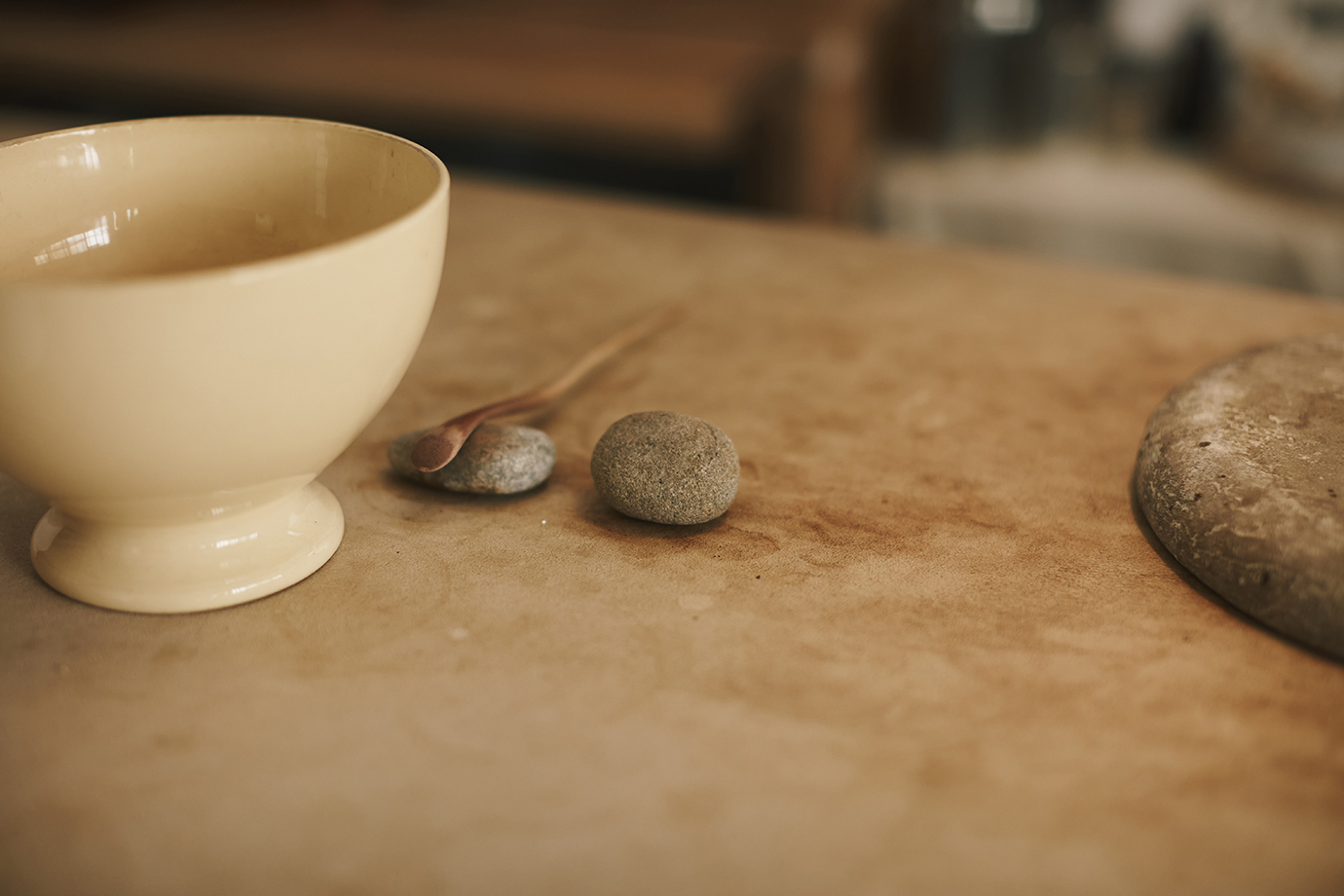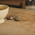 茶則も木の皮だったり、スプーンを置くのに拾った石を使ったり。