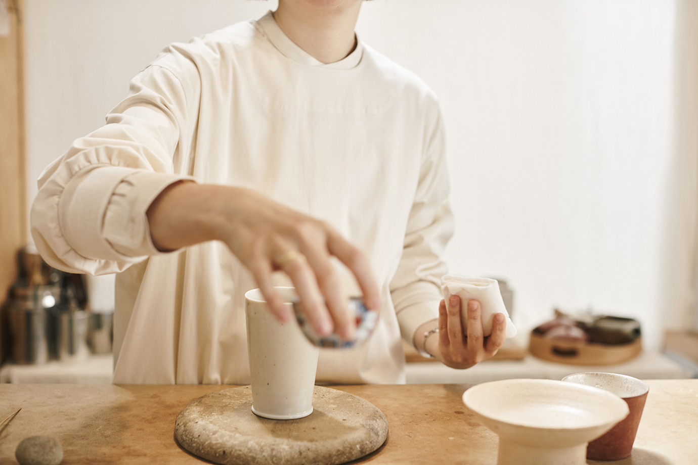 入口でそれを言ってしまうと「むずかしそう」ってなる人が多いし、「これなら家でもできそう」って思ってもらえるように、茶器もあえて簡単なやり方をしています。