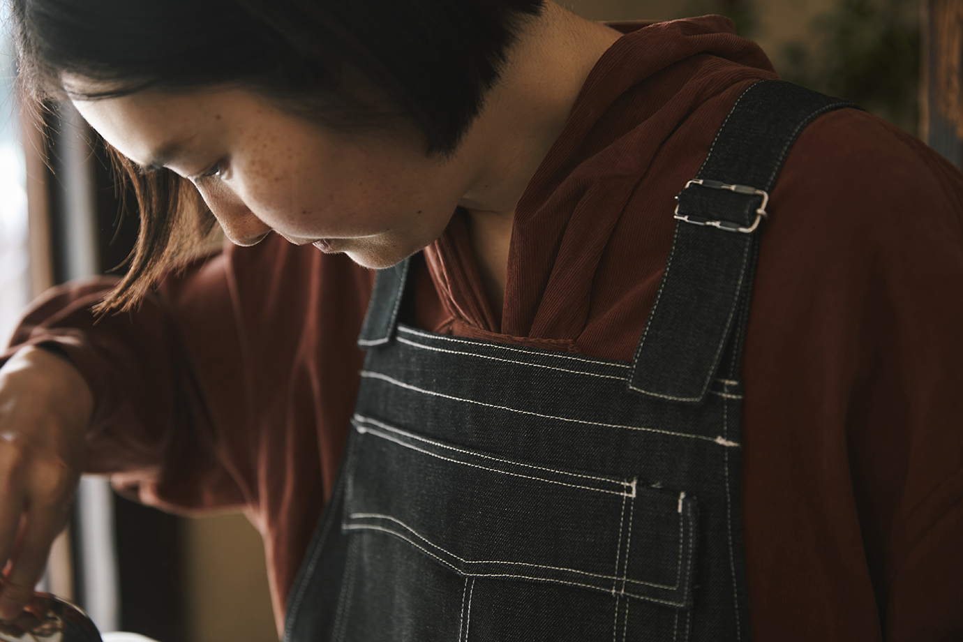 普段着に適した、普遍的なワークウェアーを作り、シーズンによってほぼ変えることなくコレクションを制作してきた Handwerker。毎回、魅力を感じる仕事をしている方に着ていただき、撮影を行ってきました。